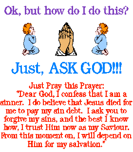 If you have accepted Jesus as your personal Saviour, we'd love to hear from you! Send E-Mail to Pastor by clicking: E-MAIL